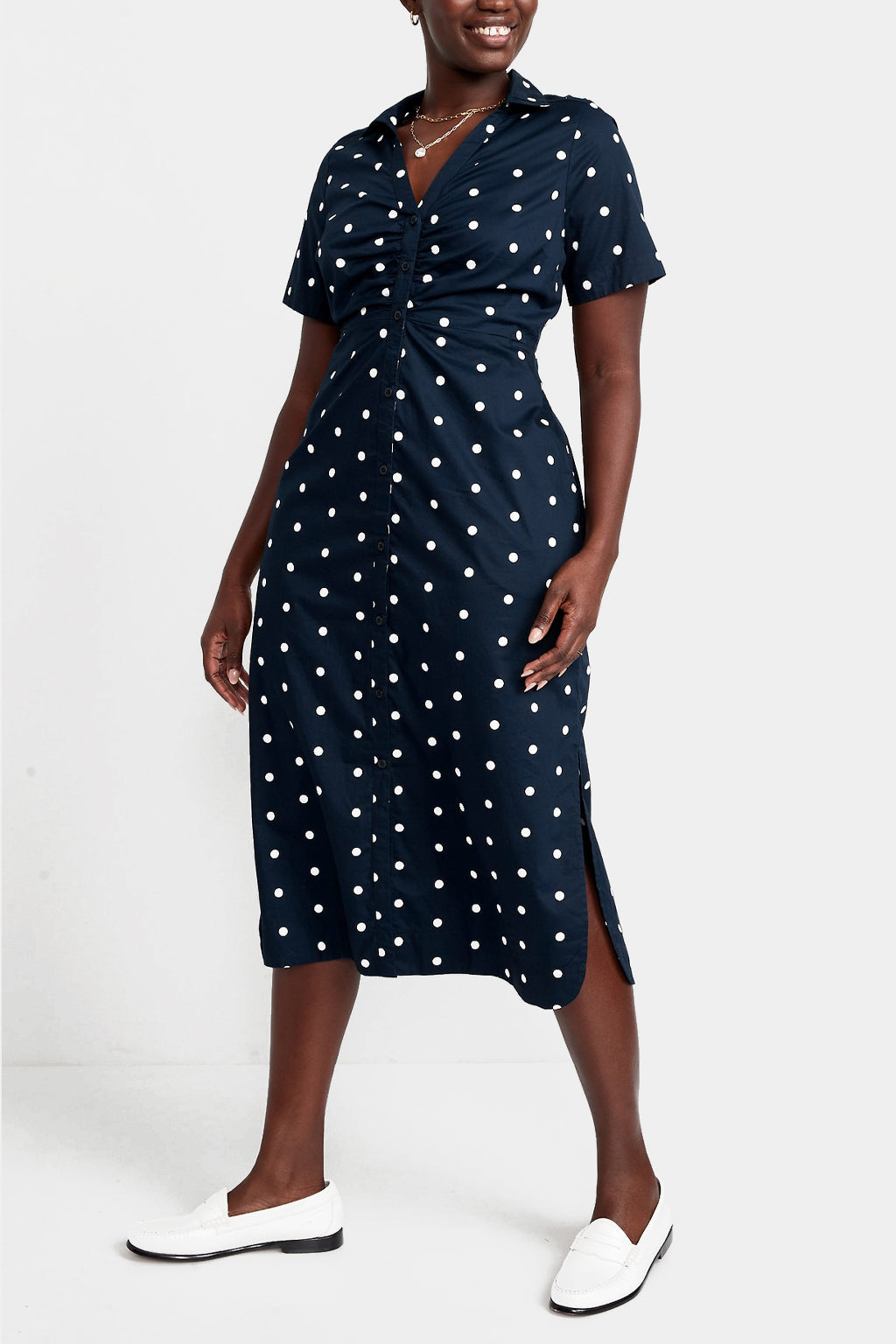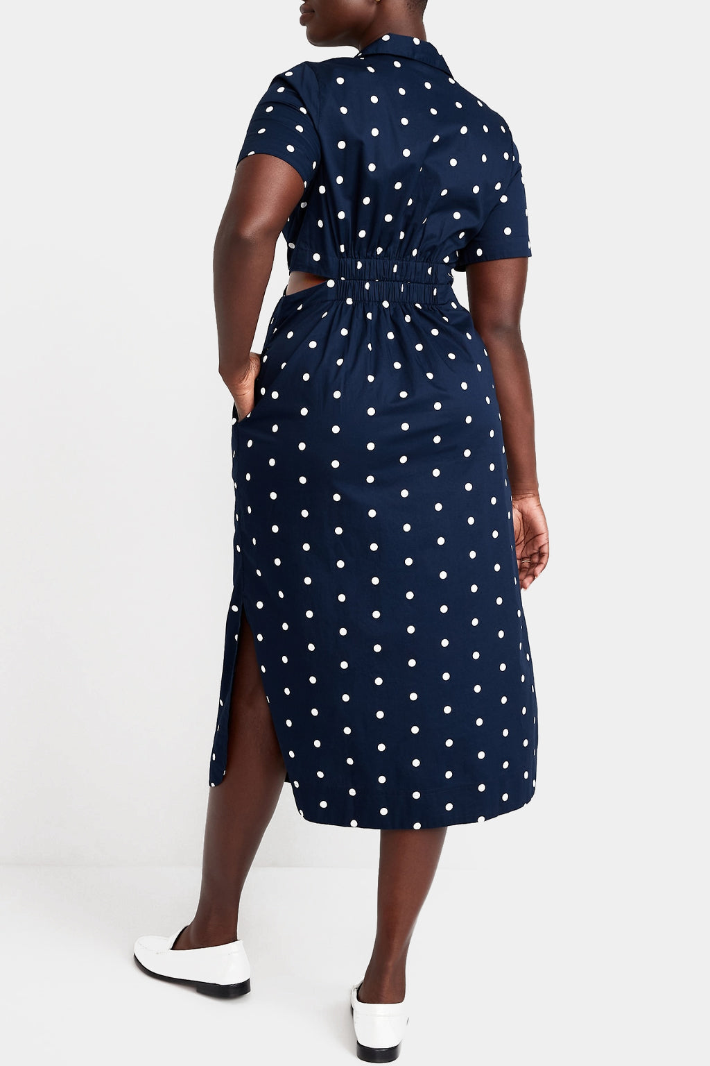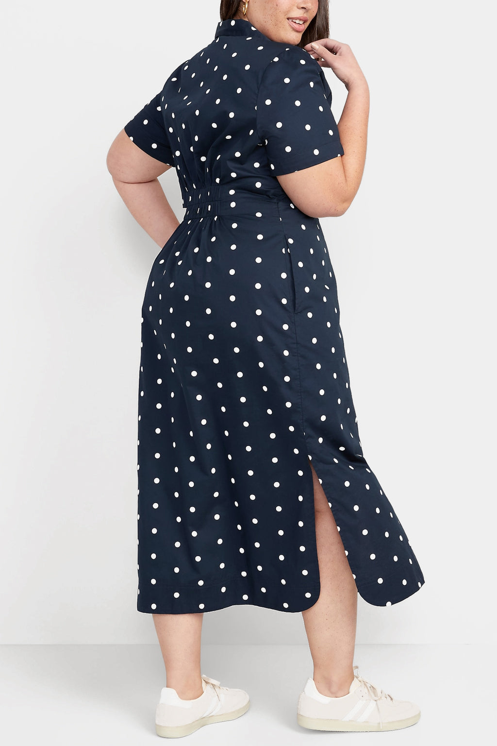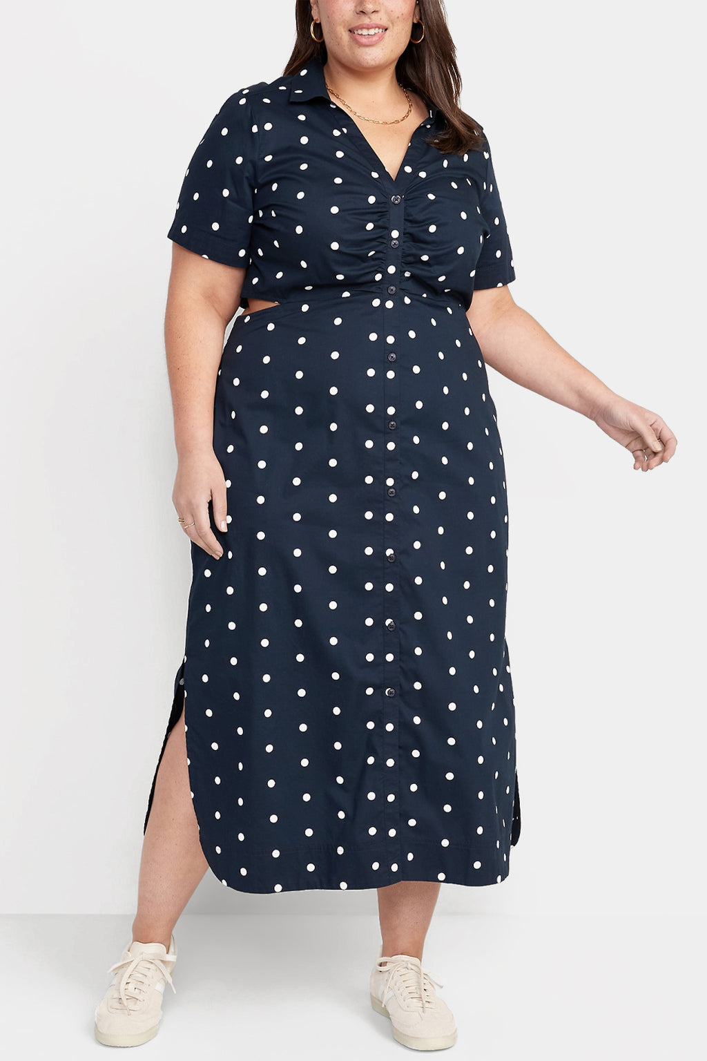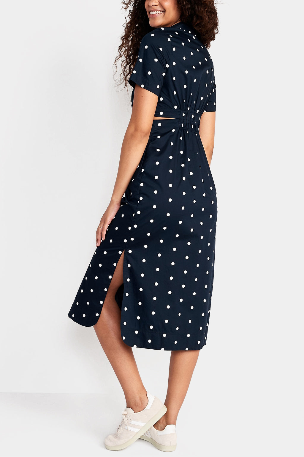 The Old Navy Cutout Midi Shirt Dress for Women is a stylish and versatile dress that can be worn for a variety of occasions. The midi length hits at or below the knee, making it appropriate for both casual and more formal events.