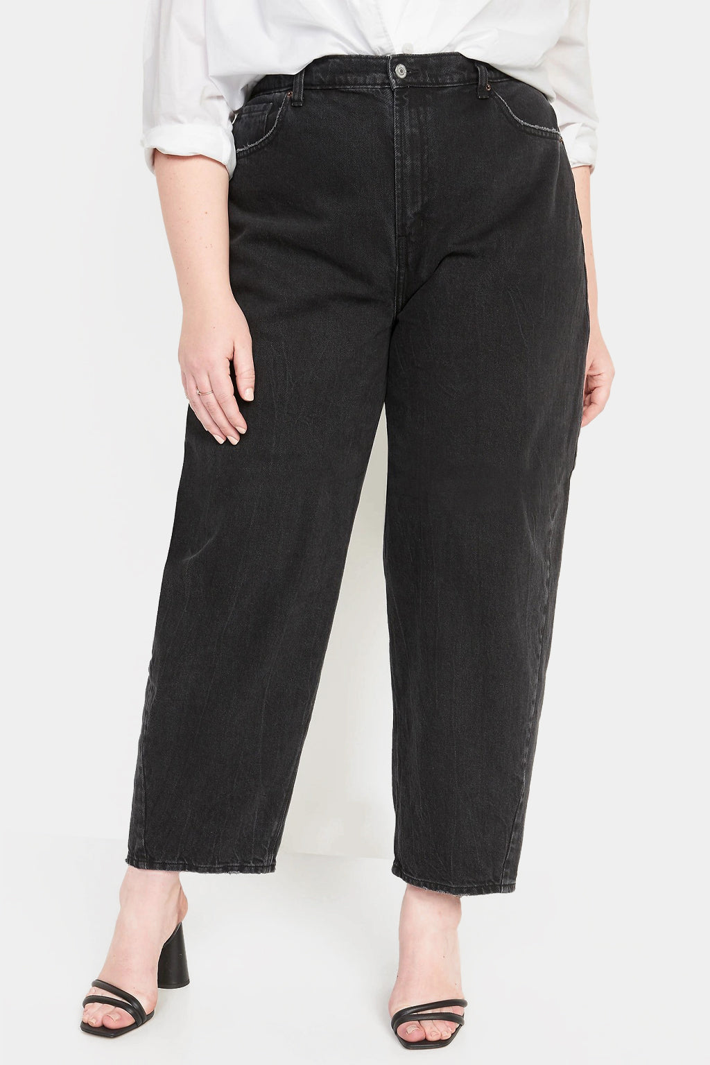 The Old Navy ladies Jean pant is designed with a loose fit from hip to thigh with a curved taper leg. It has a no-stretch fabric for that vintage fit, and it is made to be worn right below your natural waist. It is faux-cotton, so it will keep you comfortable all day long.