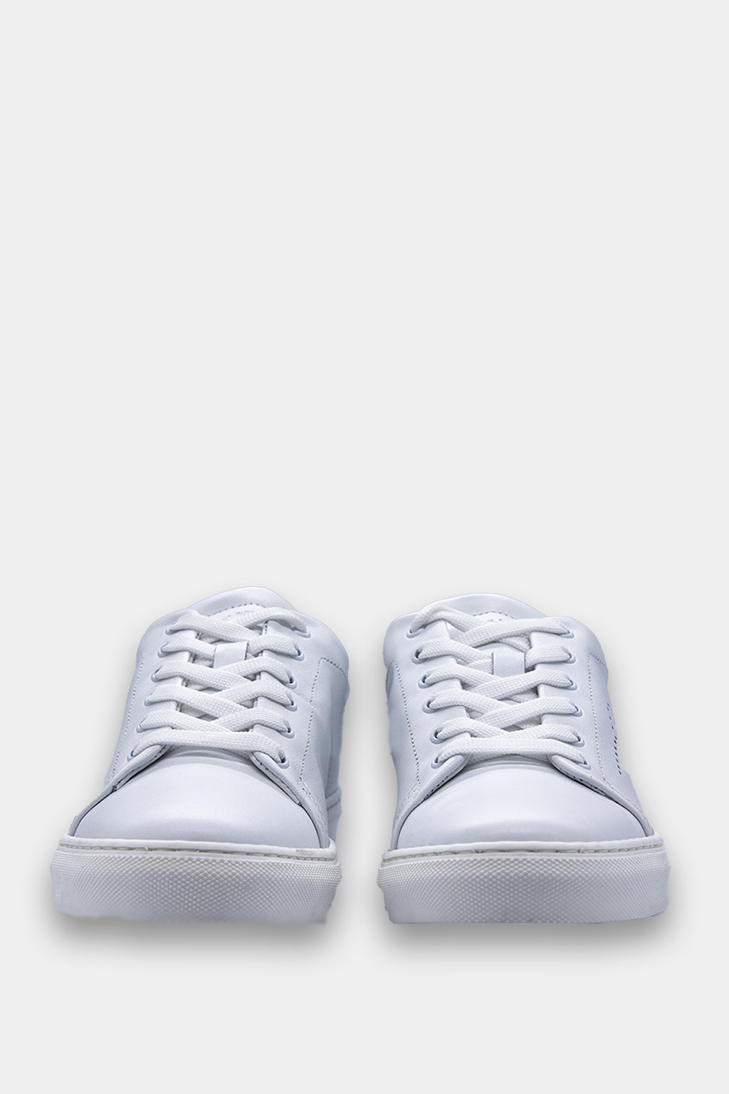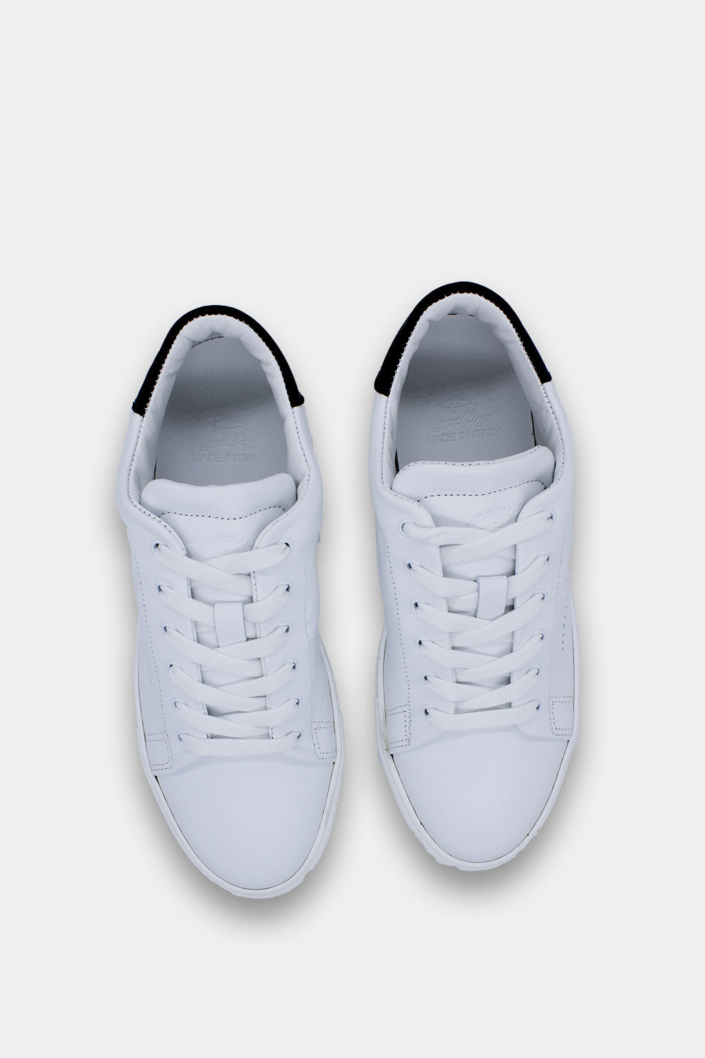 As a product expert, it's hard not to crave these luxurious Paul & Shark Yachting leather sneakers. Made in Italy, these trainers boast a sleek leather upper and lining, along with an EVA sole unit. Its lace fastening features tonal eyelets, and the contrasting white heel tab adds a stylish touch. The iconic logo is embossed on the padded tongue, while a subtle perforated shark silhouette is seen on the side panel, showcasing the brand's expertise.