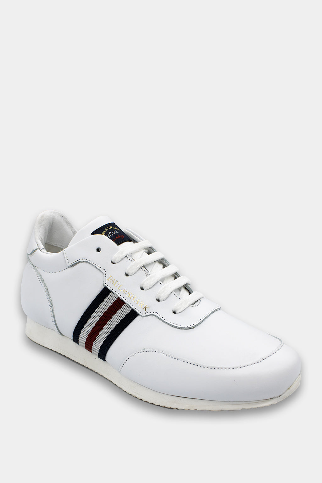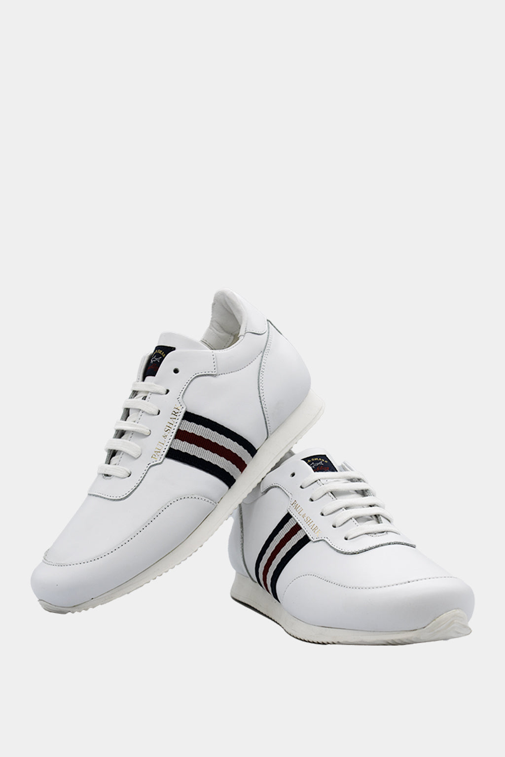 Elevate your sneaker game with Paul & Shark's luxurious leather trainers. These Italian-made sneakers feature a sleek leather upper and lining, along with a lightweight EVA sole and tonal eyelets on the lace fastening. The design is completed with a bold white heel tab and an iconic embossed logo on the padded tongue, showcasing a subtle perforated shark silhouette on the side panel.