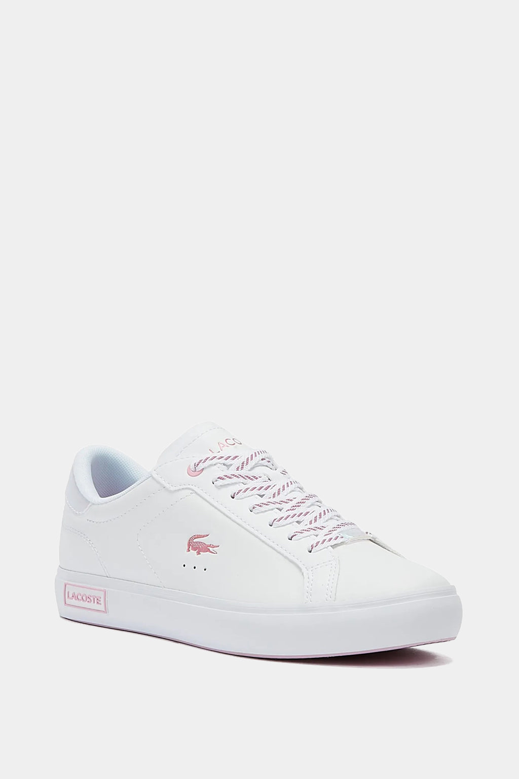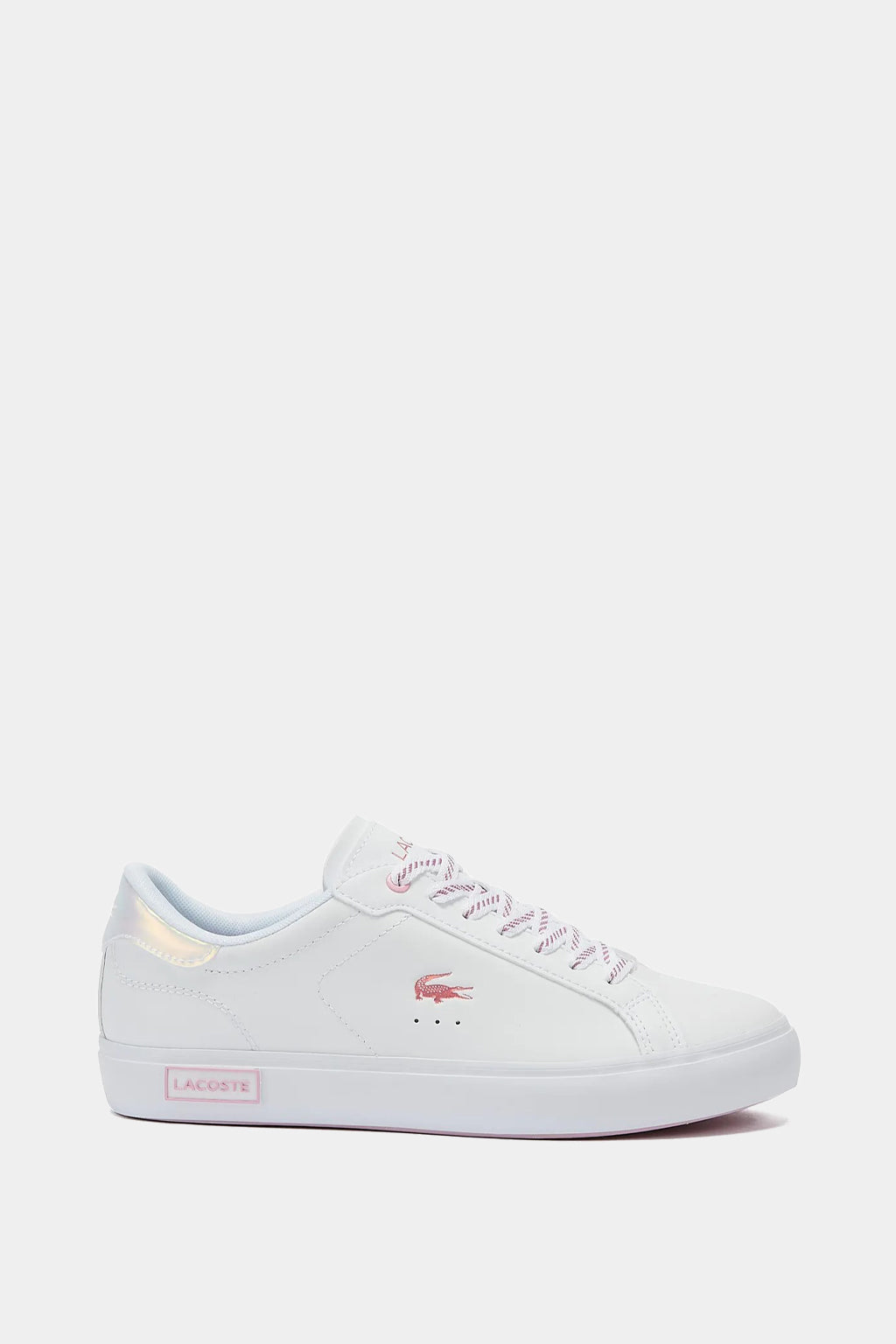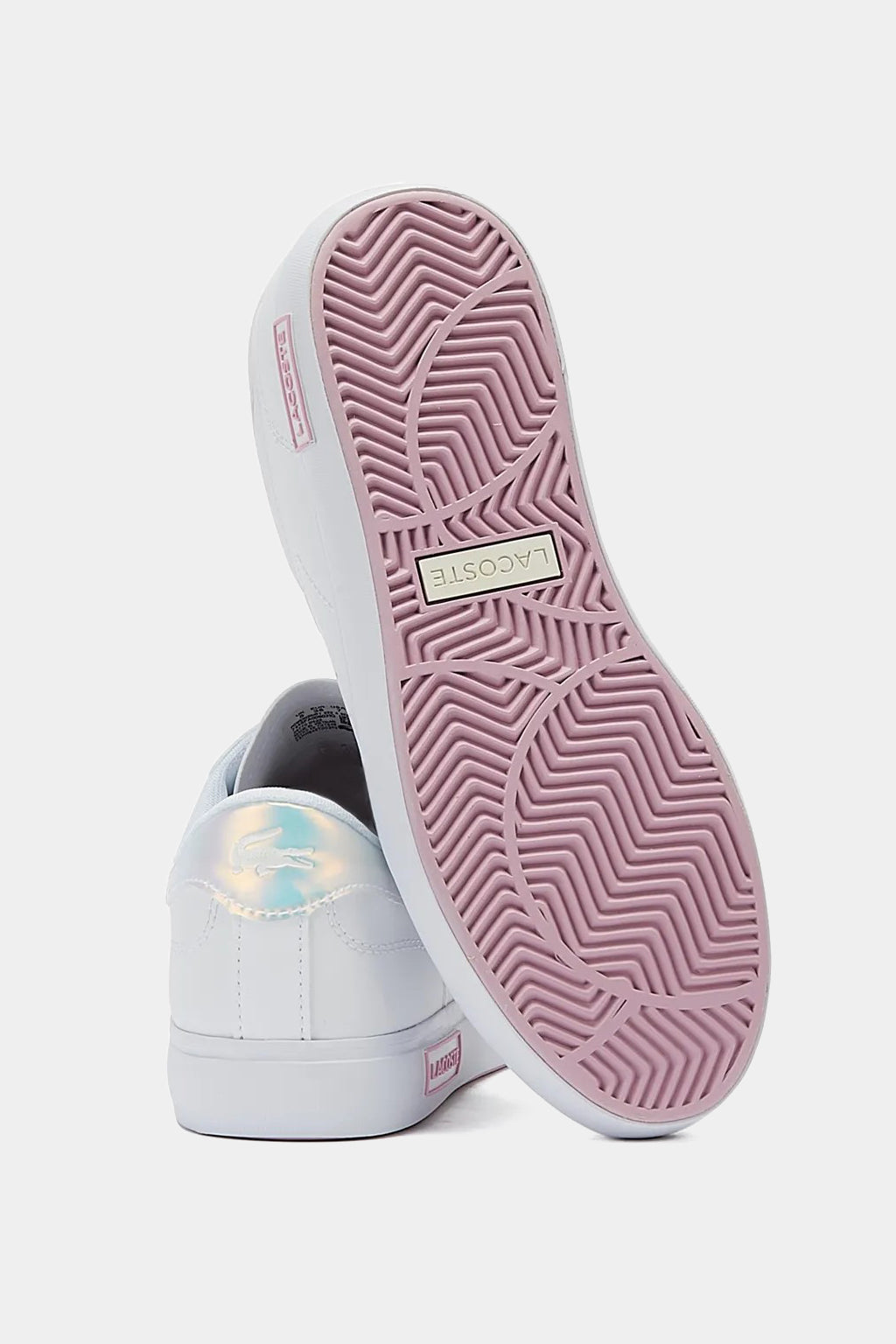 The sporty, elegant Lacoste Powercourt comes in clean white with a contrasting brand crocodile and heel area. The non-slip outsole offers a secure hold and the popular Ortholite insole ensures comfort.