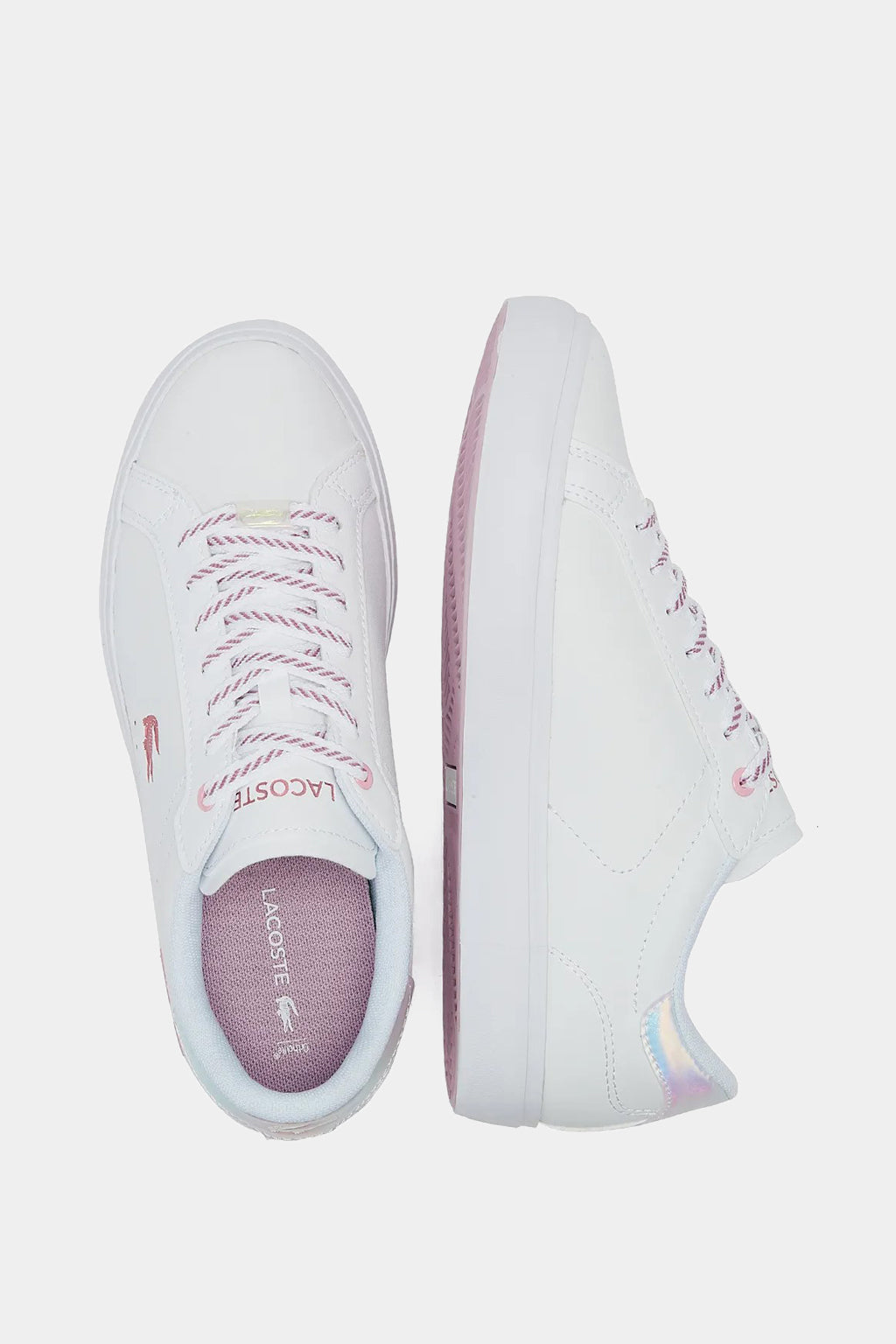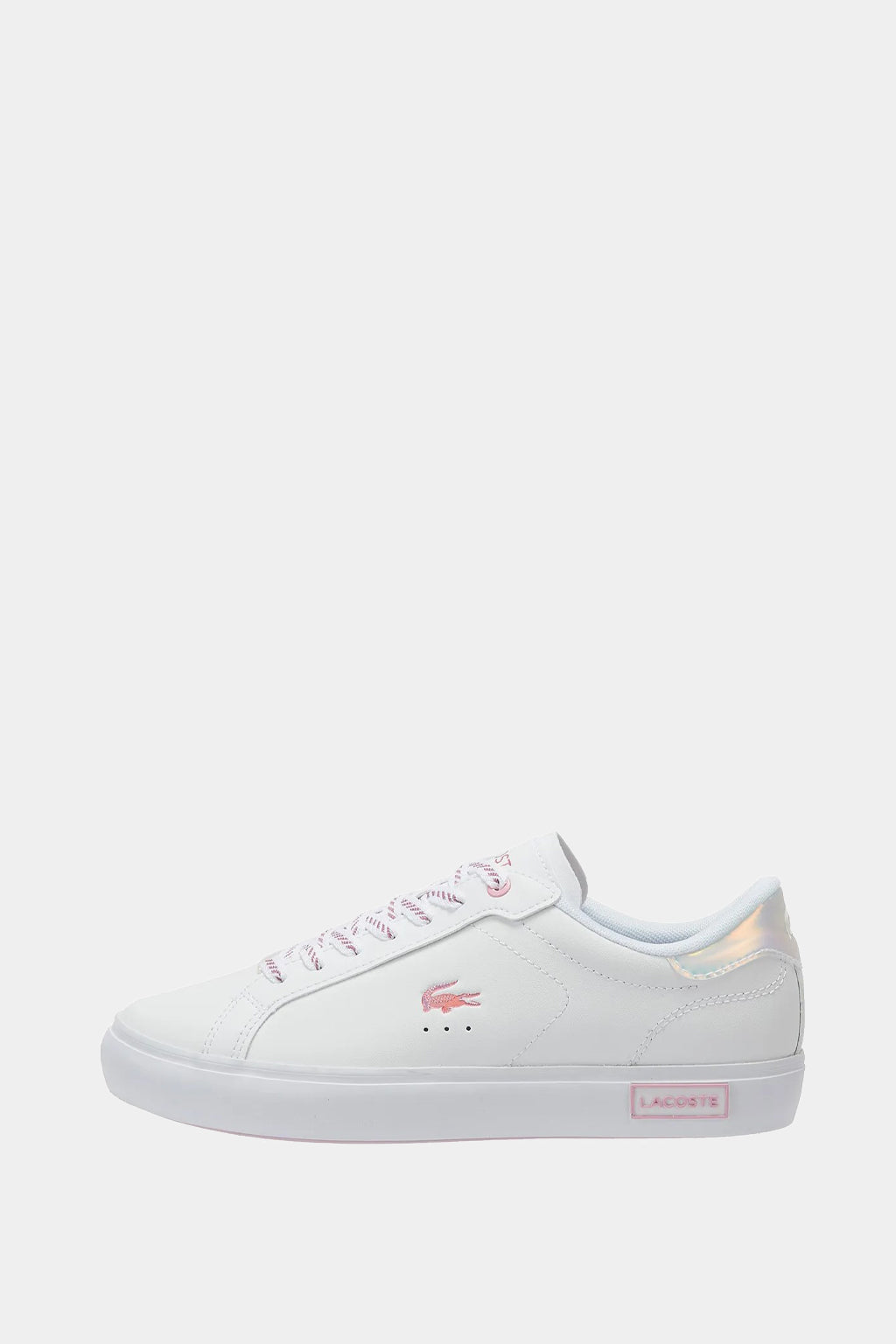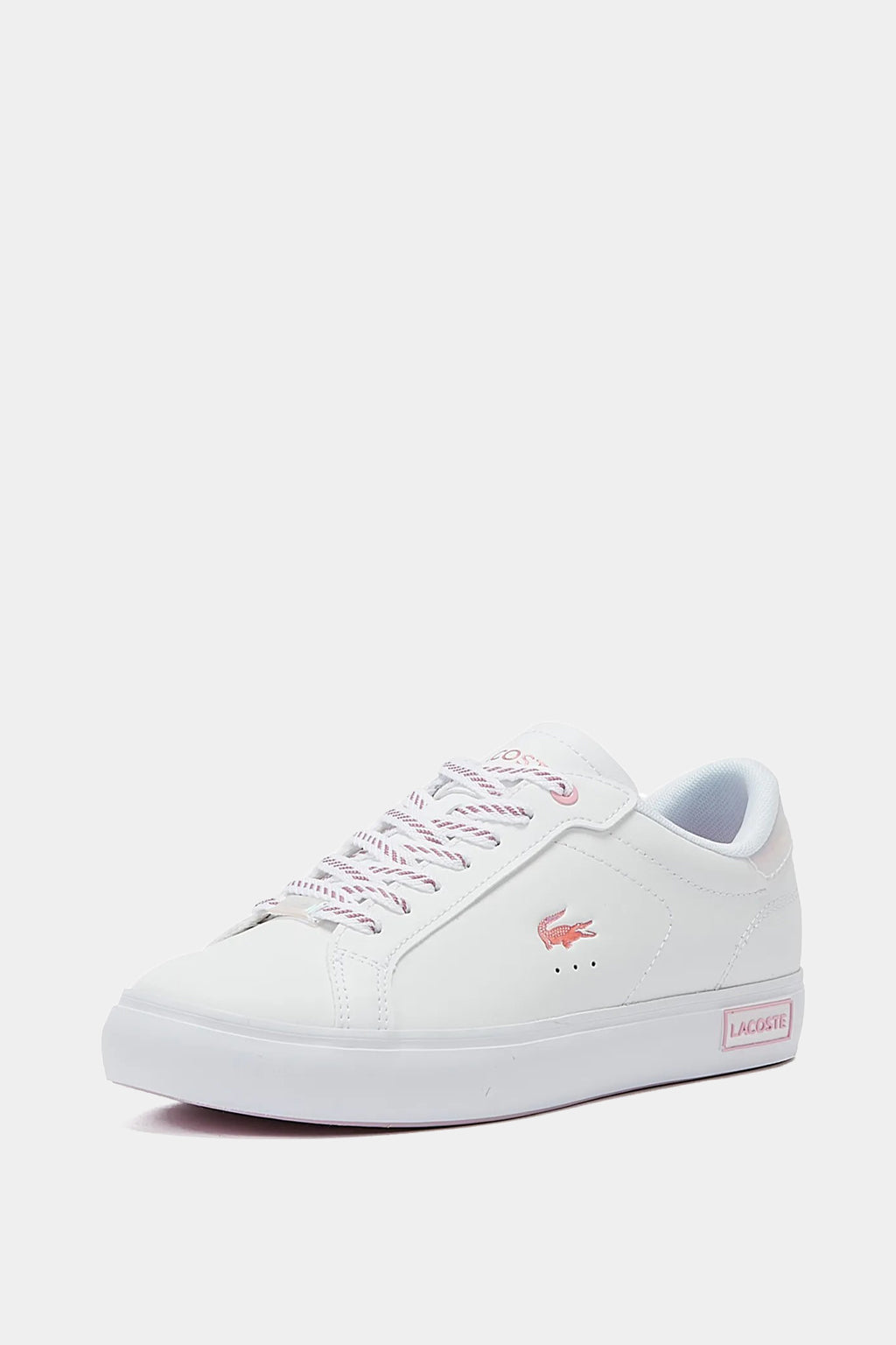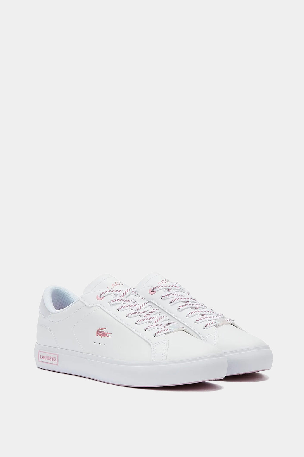 The sporty, elegant Lacoste Powercourt comes in clean white with a contrasting brand crocodile and heel area. The non-slip outsole offers a secure hold and the popular Ortholite insole ensures comfort.