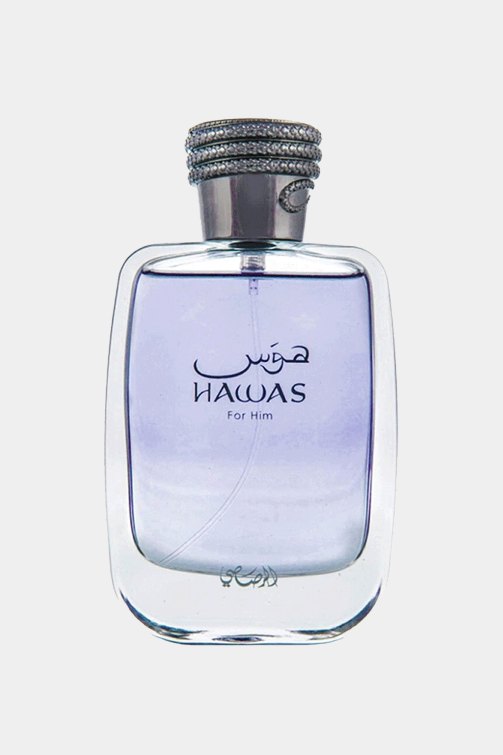 Hawas for Him is an aquatic, woody fragrance with cinnamon, bergamot, sandalwood, and fresh citrus, embodying the modern man’s strength and adventure, with a bold python-themed bottle.