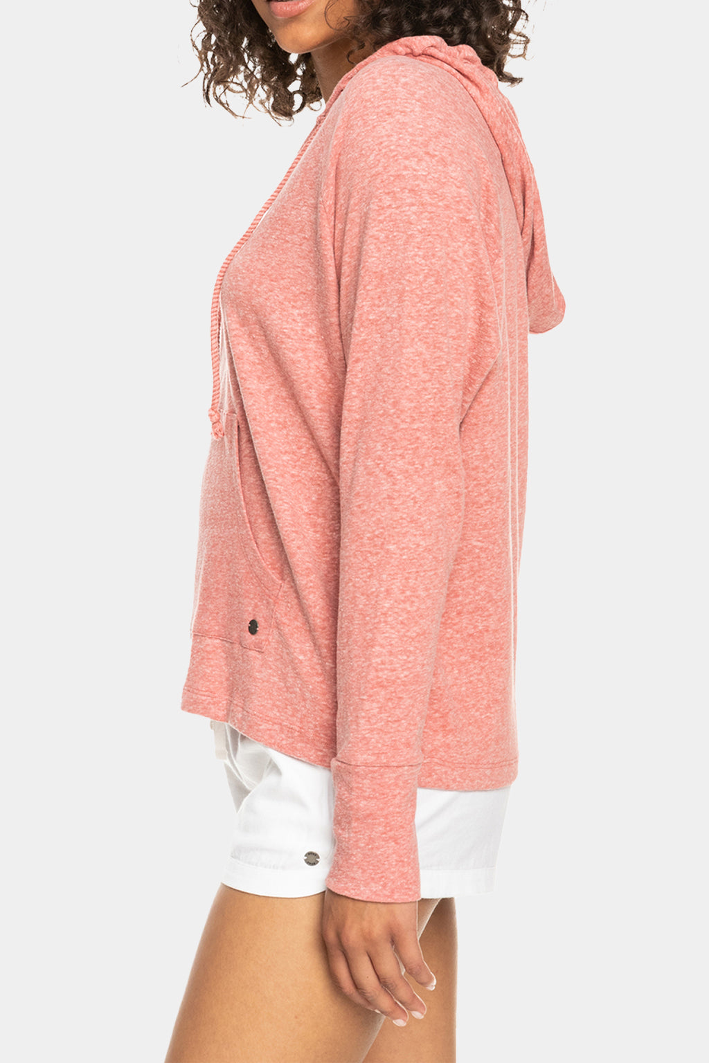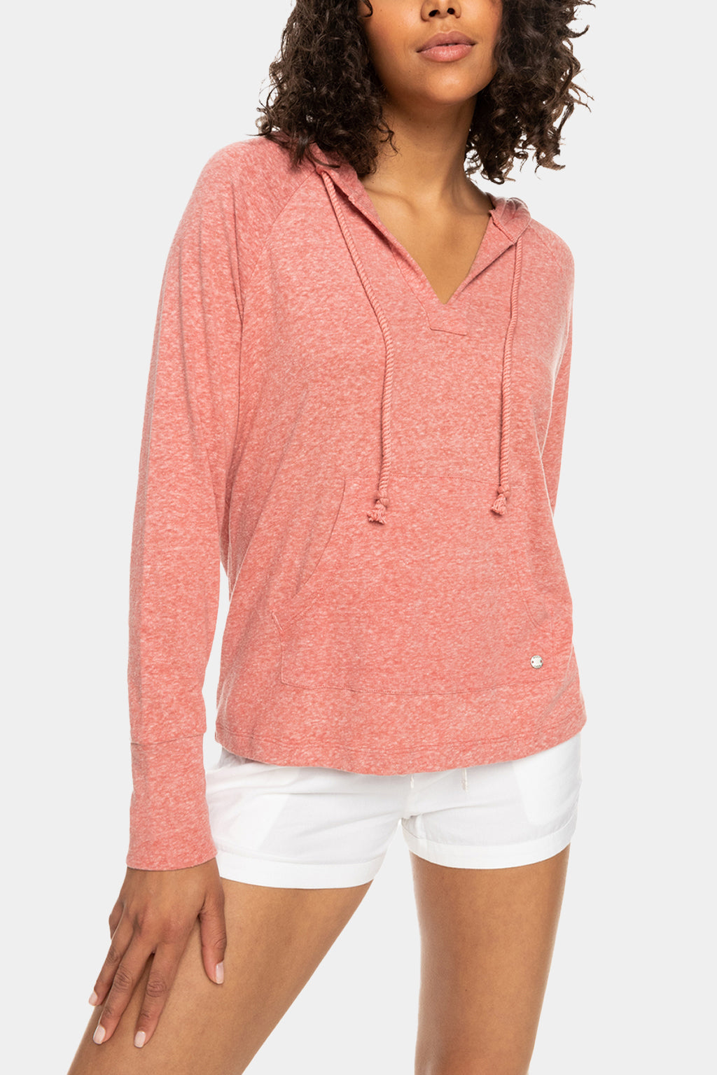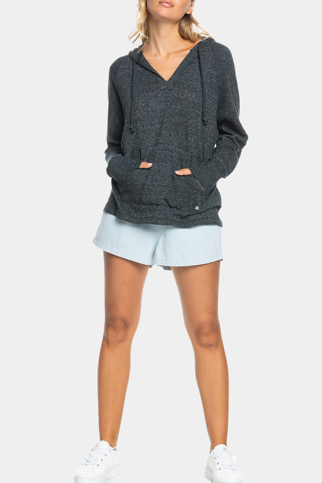Stay comfortable and stylish while catching waves with Roxy's Destination Surf Hoodie. Made with soft blended cotton, this hoodie features a kangaroo pouch pocket and a deep V-neck for a relaxed fit. Perfect for surfers on the go.