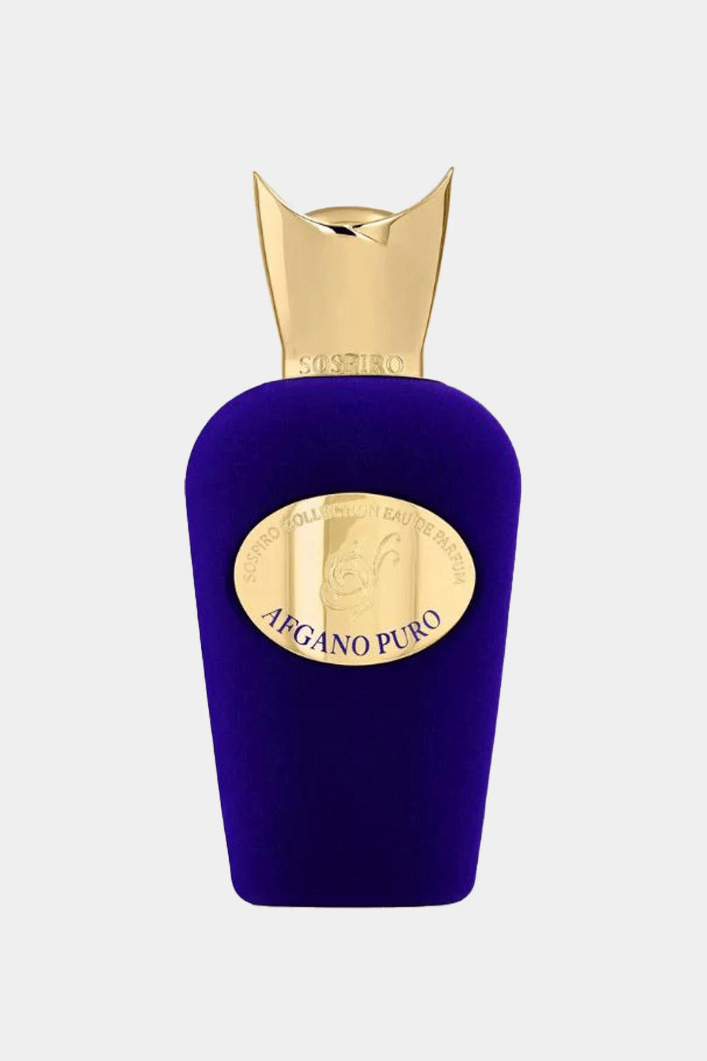 Sospiro's Afgano Puro is a bold unisex fragrance with a fresh herbal opening, a rich patchouli heart, and a sensual blend of vanilla, tobacco, and musk. It exudes sophistication and exotic allure.