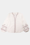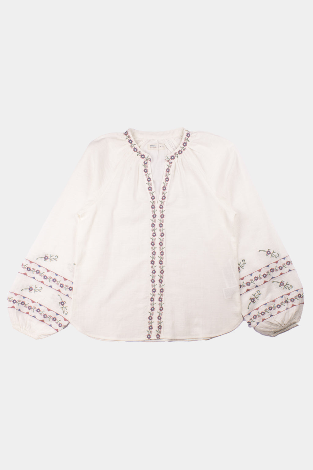 Straight-cut Springfield blouse in knit fabric with flower embroidery and elasticated cuffs.