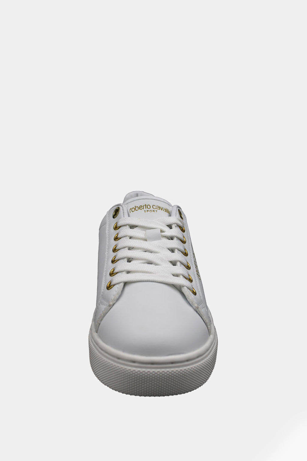 The Roberto Cavalli shoe is made of a sleek, lace-up design. The upper is made of smooth, soft leather, and the sole is made of durable rubber. These shoes are comfortable and stylish, perfect for any occasion. Decorated with Gold color on the backside of the shoe.