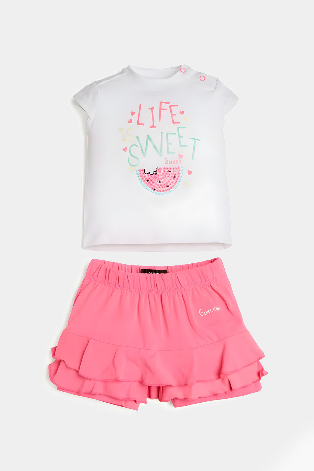 A classic, comfortable, and stylish outfit for boys. This set includes a short sleeve shirt and matching shorts.