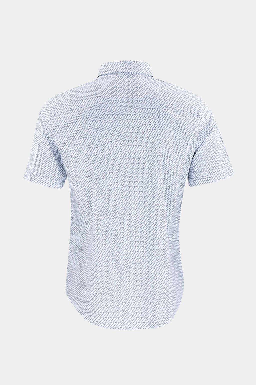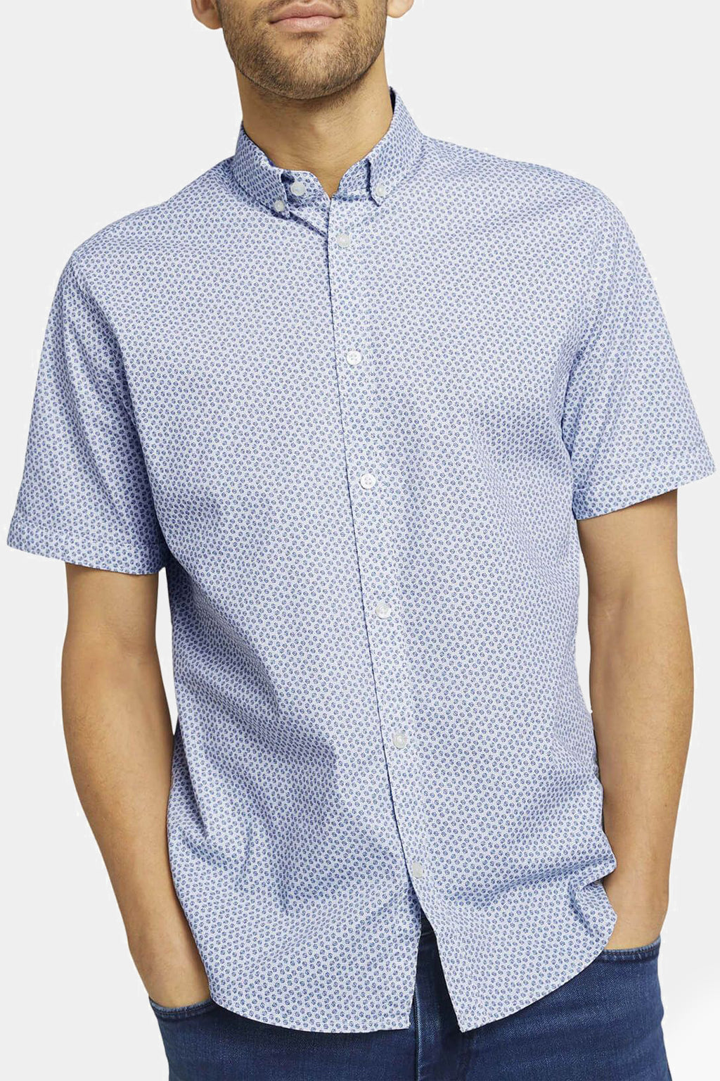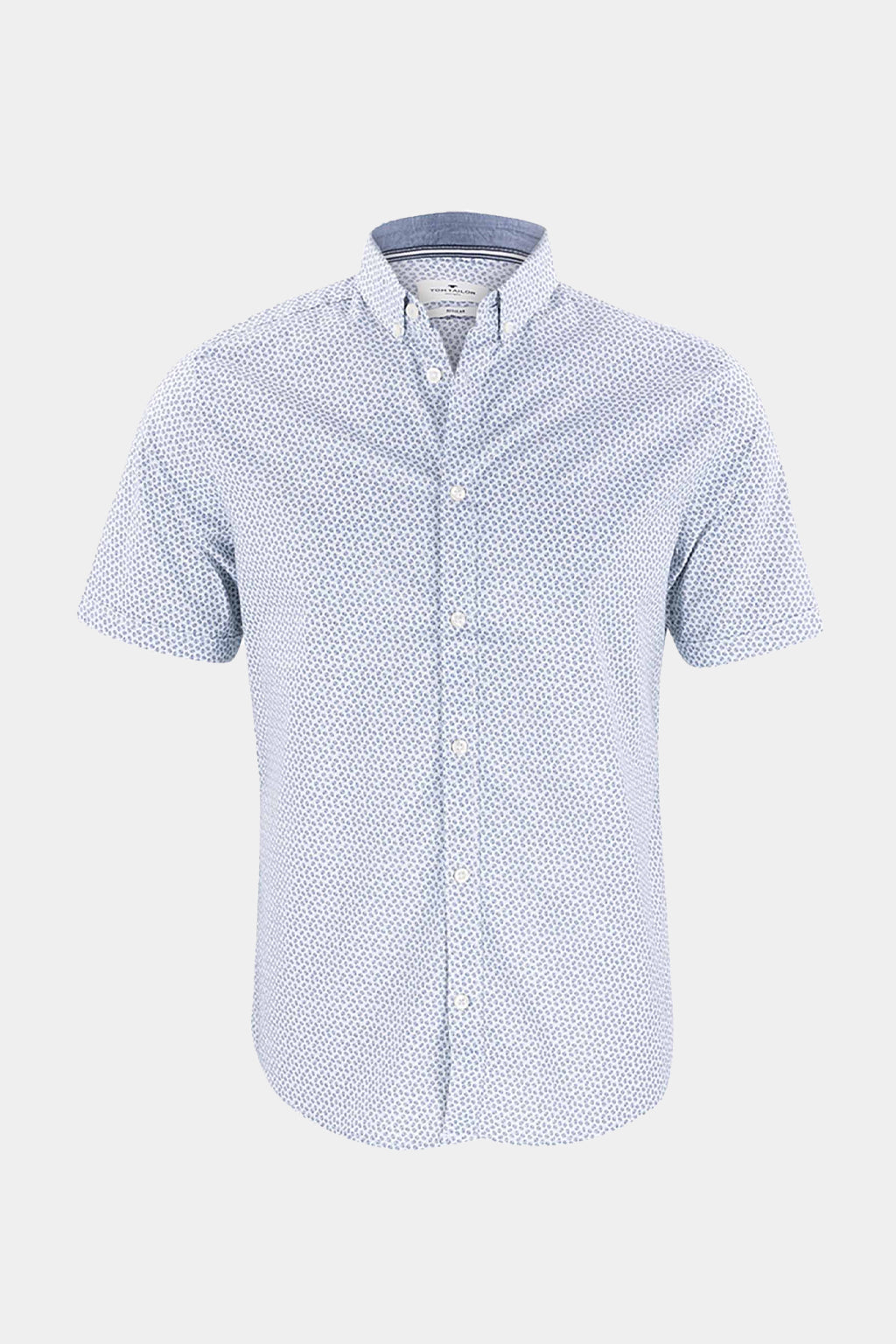 Men's light shirt from the German fashion brand Tom Tailor. This classic shirt with short sleeves impresses with a fashionable all-over print in a graphic design and a timelessly sporty silhouette. The comfortable shirt is made of elastic cotton, which guarantees a comfortable fit. The shirt with a collar and short sleeves is fastened along the entire length with small buttons. A casual comfortable shirt is suitable for many occasions.