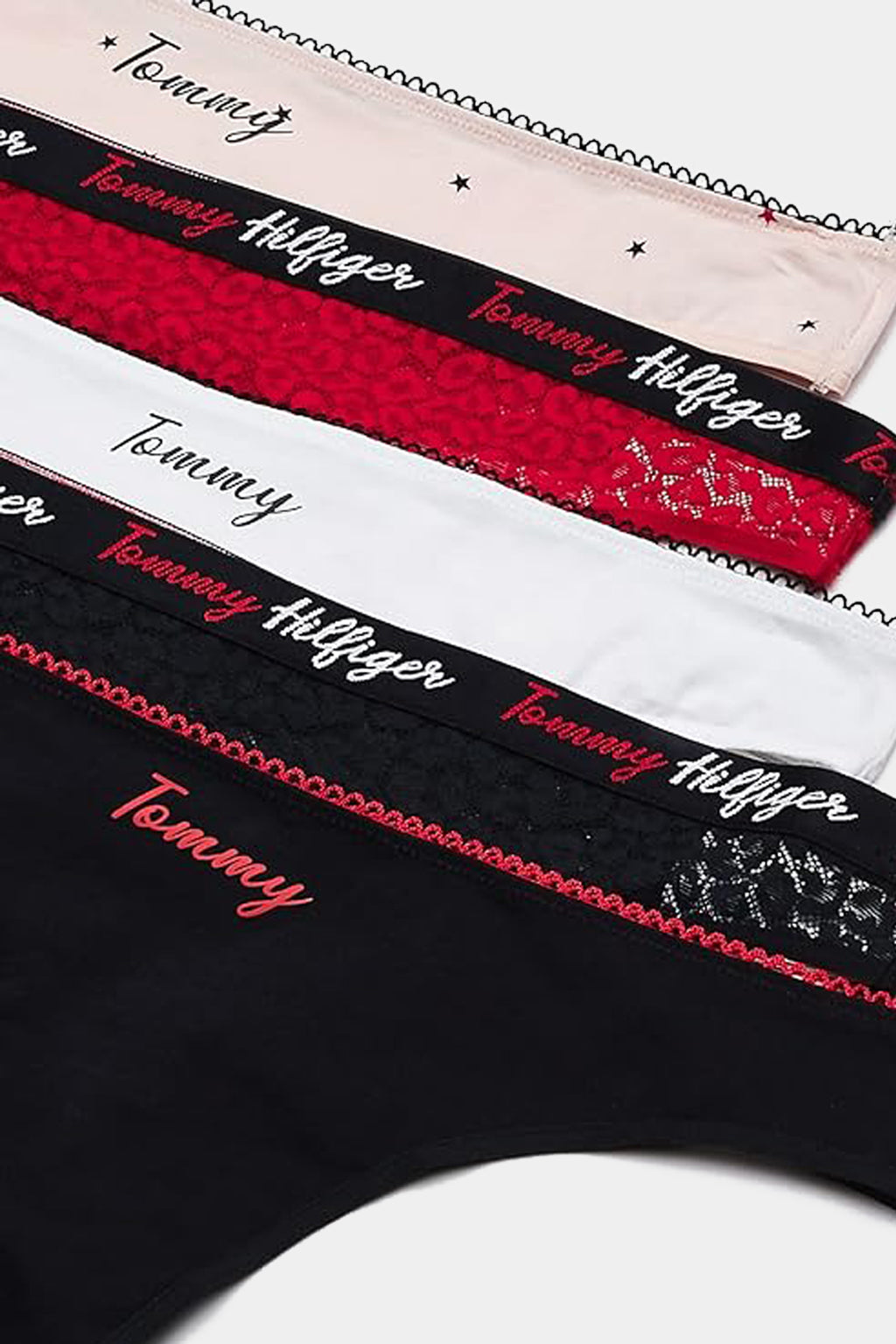 Indulge in the ultimate in comfort with this festive 5-pack of Tommy Hilfiger's Thongs. Crafted from organic cotton for a silky smooth feel, enjoy lightweight luxury with a thong cut and soft elastic gently hugging your body. Five distinct designs in vibrant tones capture the essence of the season, presented in a beautiful gift box for a charming touch.