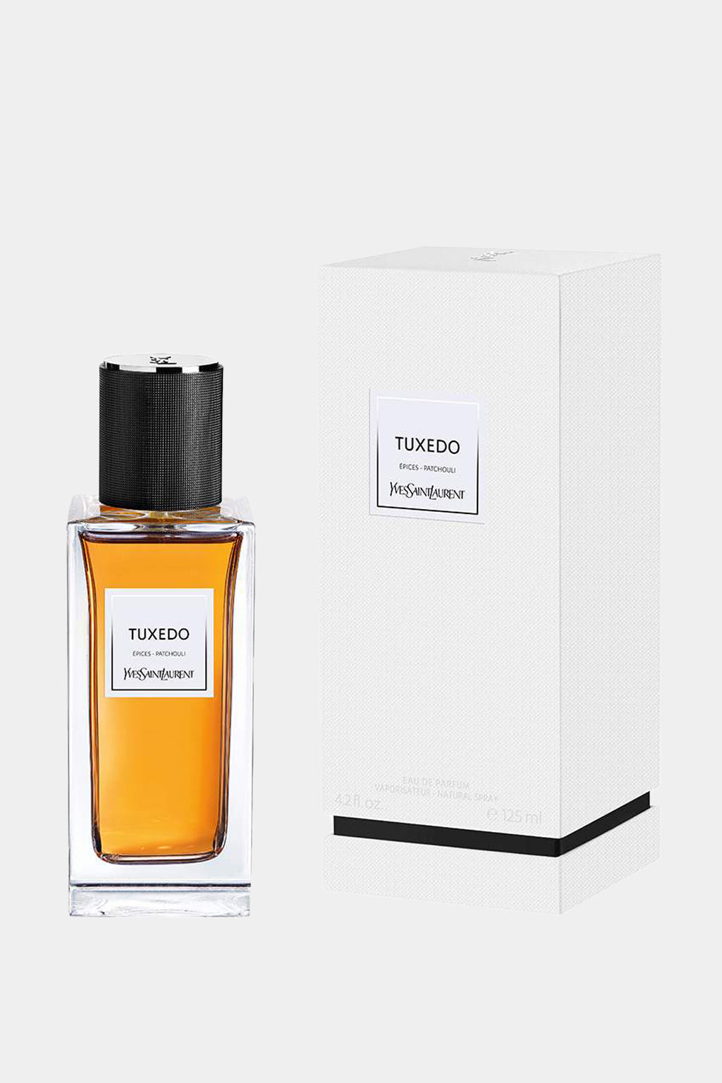 TUXEDO eau de parfum encapsulates the matte texture of patchouli enlightened by the dusky brightness of spices. A contemporary elegance subverted by a note of utter impertinence. Dry and smoked amber - fluid and shiny incense - sour berries.