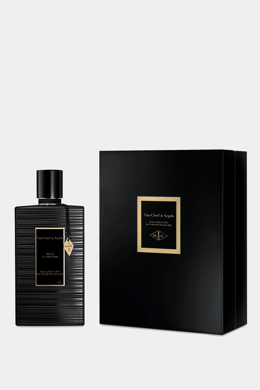 Experience the unique and luxurious scent of Van Cleef & Arpels' Collection Extraordinaire Rêve d'Encens in its artfully textured bottle. The eau de parfum features an exquisite blend of incense, romantic jasmine and frangipani flowers, and a sensual vanilla base for a rich, enchanting aroma.