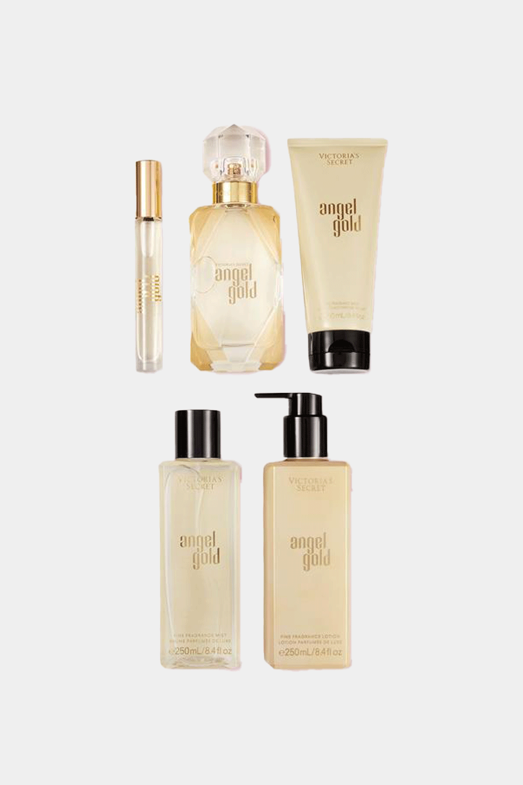 Experience elegance and comfort with Victoria Secret's Angel Gold Set. This luxurious scent begins with a burst of Bergamot, followed by a blooming Gardenia heart. The soft Musk creates a warm, golden finish. Indulge in a clean, floral fragrance and feel confident all day.