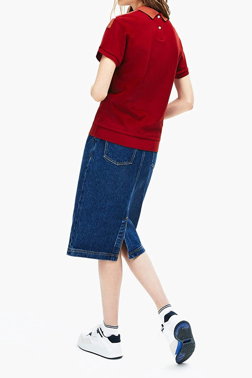 Available in an array of colors, you can have more than one version of this cotton polo shirt. The mother-of-pearl buttons, embroidered crocodile on the chest and thermo-glued button placket keep it feminine and stylish.
