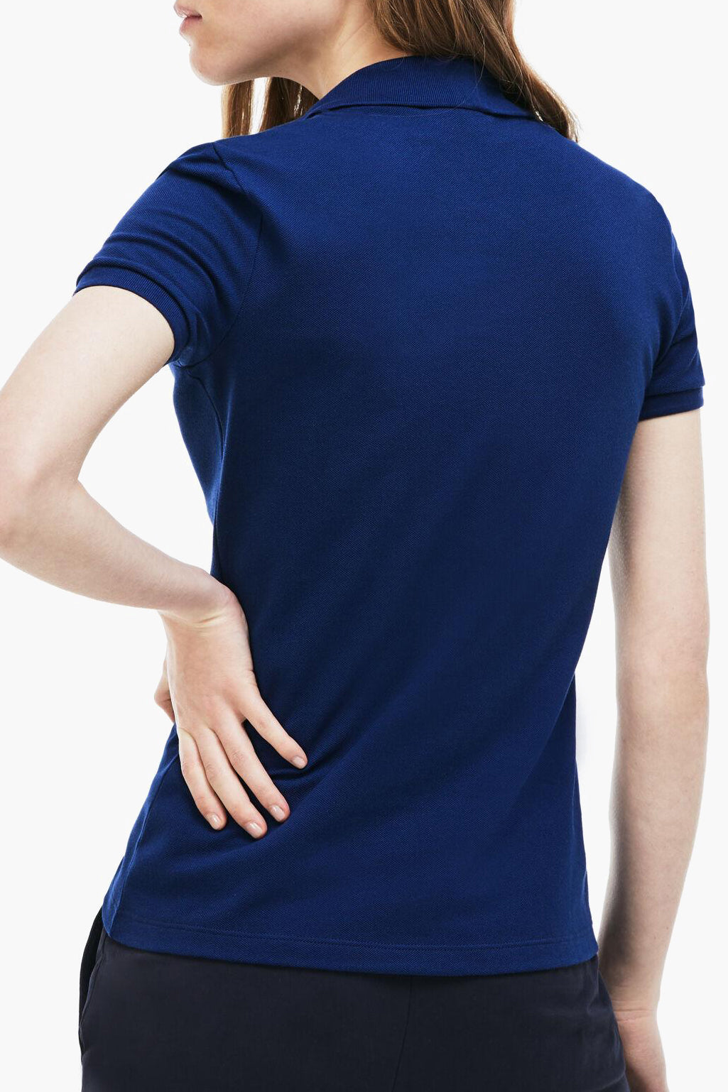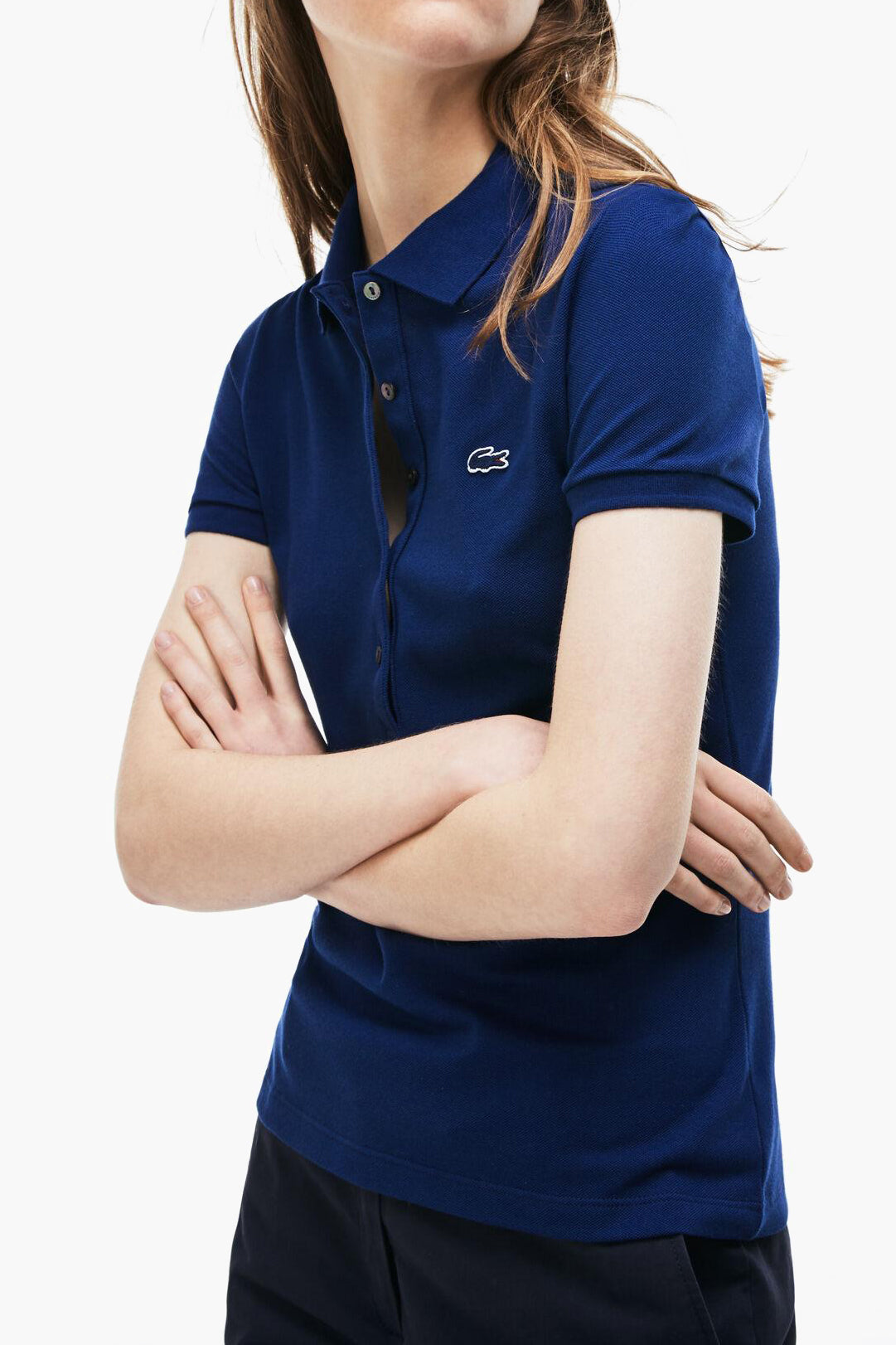 The Lacoste women's stretch cotton polo shirt is made of a stretch cotton, and has a feminine round neckline. It has short sleeves and is fitted.
