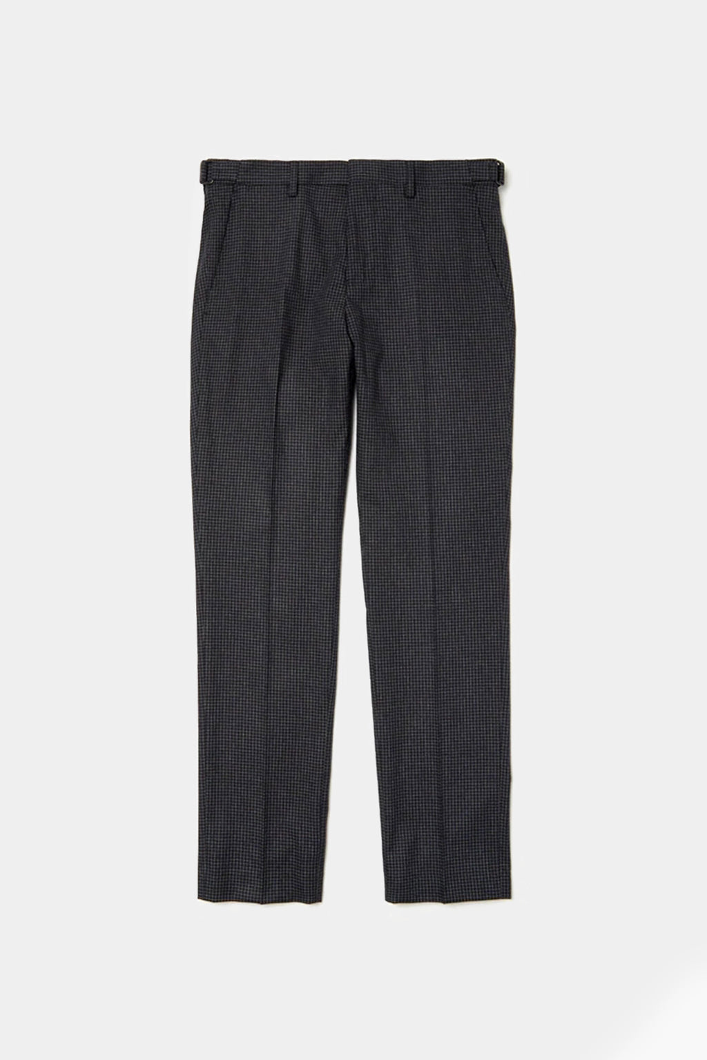 Lacoste men's 85. Fashion category: pants & leggings. Color: black/multicolor. Lacoste wool blend slim fit check chino pants. Stretch wool and cotton blend flannel pants featuring a slim fit, embroidered tone-on-tone crocodile branding, adjustable waistband with metal buckles and hook and zip fly, slant pockets, ticket pocket and back pockets, including one buttoned telephone pocket.